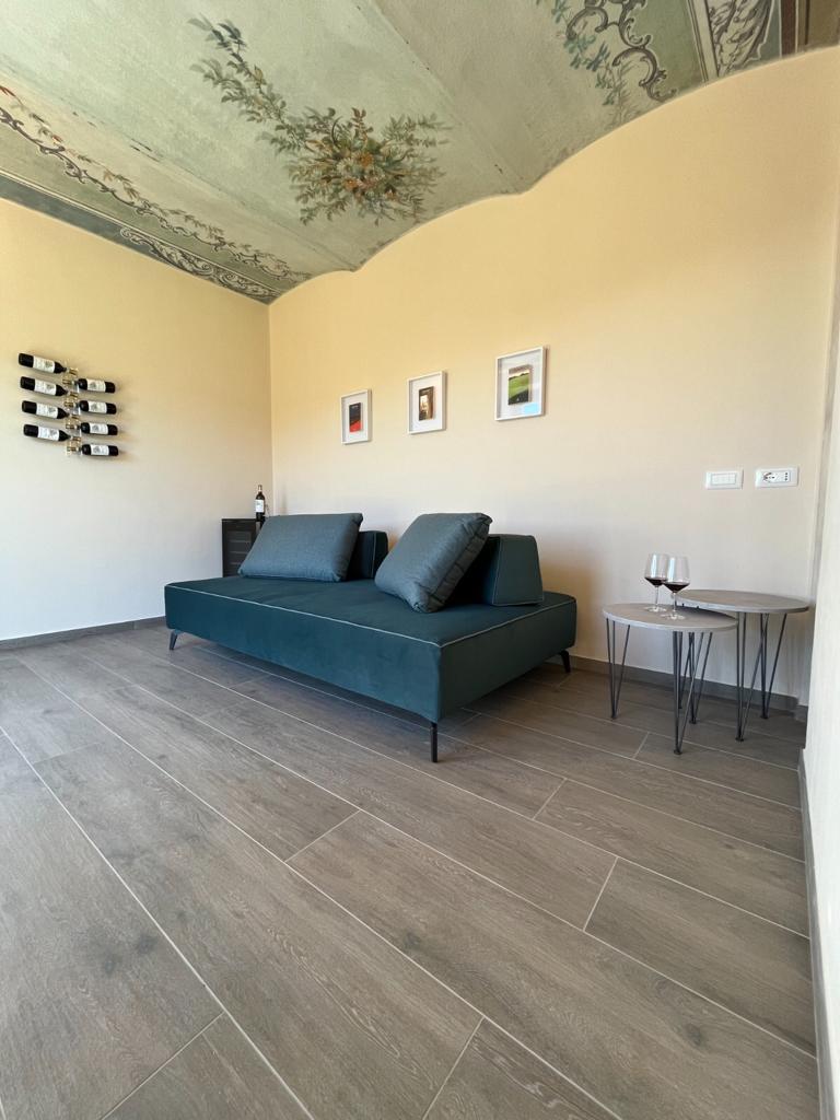 Affresco is our groundfloor 50 m2 suite with a large livingroom and a typical view on the private garden placed just next to our Nebbiolo vineyard.